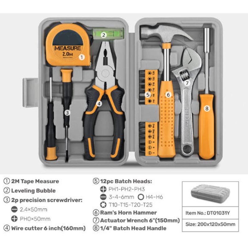 MARSHINE은 가정 매니아, 임차인 및 일반 수리 사용자를 위한 디자인으로 각 도구를 다루기 쉬우면서도 일상적인 내구성 요구 사항을 충족할 수 있습니다. 뛰어난 제품인 20피스 수동 유압 하드웨어 도구 세트는 정밀 드라이버, 2.0M 줄자, 6인치 와이어 커터와 같은 필수 도구를 휴대용 하드 케이스에 담아 가격 경쟁력이 매우 높습니다.