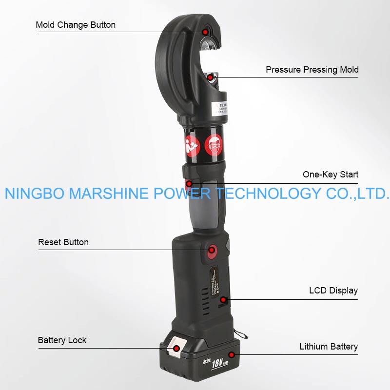 MARSHINE ES-400B 직선 핸들 리튬 배터리 구동식 유압 압착 플라이어는 구리 400mm²/알루미늄 300mm² 케이블을 처리할 수 있는 직선 핸들 전동 압착 도구입니다. 전문적인 환경에서 효율적이고 신뢰할 수 있는 케이블 종단을 위해 설계된 코드가 없습니다. 고에너지 리튬 배터리가 장착된 이 개방형 유압 압착기는 강력하고 안정적인 힘을 생성하므로 전원에 대한 걱정 없이 다양한 종류의 케이블 러그 및 커넥터를 압착하는 현장 사용에 이상적인 솔루션입니다. 직선형 핸들과 균형 잡힌 구조 덕분에 좁은 공간이나 장시간 사용 시 편안하게 사용할 수 있으므로 현장이나 작업장에서 정밀한 최고급 압착이 필요한 모든 전기 기술자, 설치자 및 유지 관리 전문가에게 적합합니다.