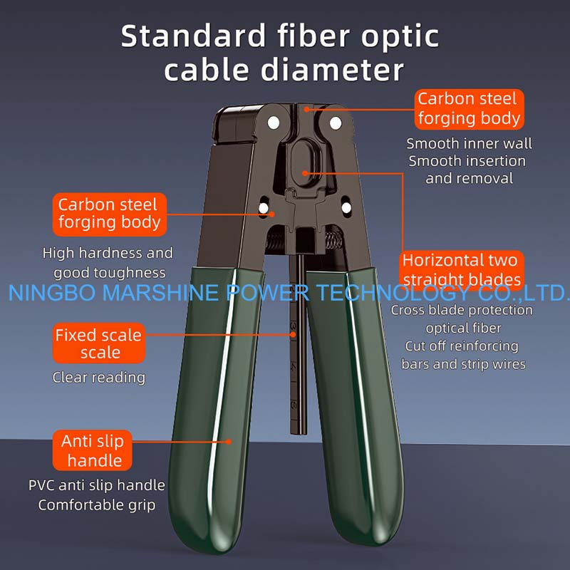 MARSHINE 표준 광섬유 케이블 스트리핑 플라이어는 커넥터나 어댑터를 설치하기 전에 외부 재킷과 완충 코팅을 벗겨내는 데 적합합니다.