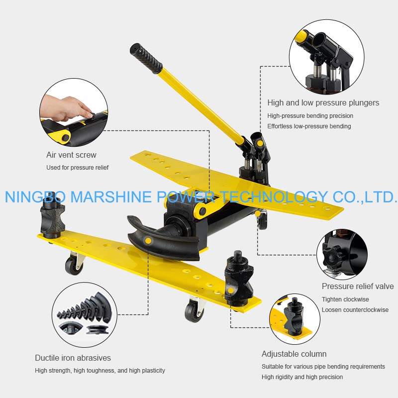 MARSHINE SWG 수동식 유압 파이프 벤딩 장비는 건축, 전기 공사 등에 사용되는 다양한 파이프 직경에 대한 다양한 벤딩 다이를 가능하게 합니다.